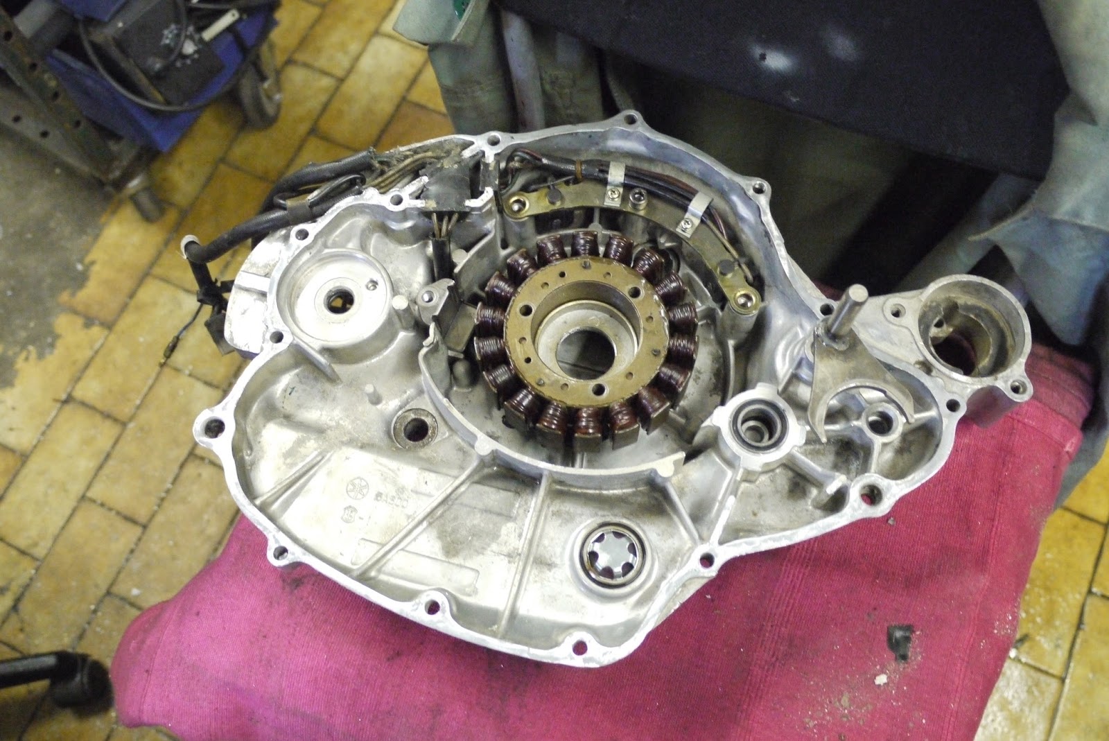 Generally I wouldn't recommend sandblasting engine cases unless all bearings are out and then you'd still have a nightmarish job of getting out all the left-over blasting media. The other way (in theory) is to really seal off the engine, which can only be done if you have an engine like this Yamaha XV engine that hasn't got any built in breathers in the cases and only in covers attached to the cylinder heads.
